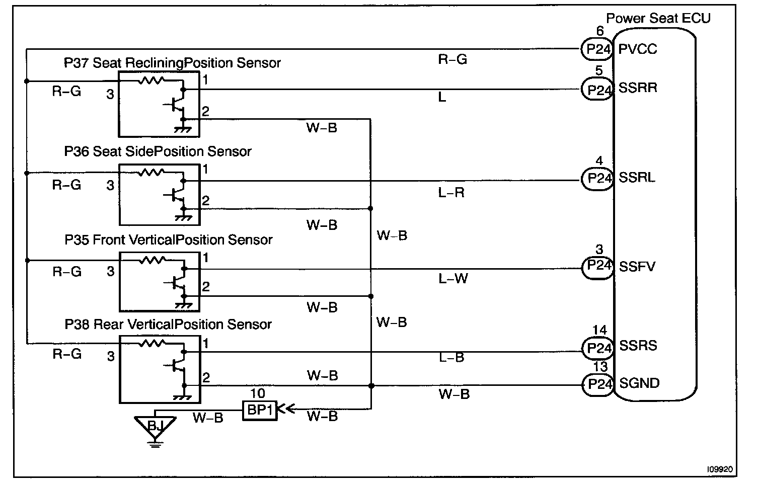 This circuit provides power to the slide, front vertical and reclining position sensors.