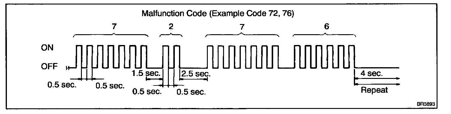 - If every sensor is normal, a normal code is output (A cycle of 0.25 sec. ON and 0.25 sec. OFF is repeated).
