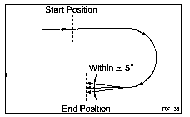 - Drive the vehicle circularly by 180 ° . At the end of the turn, the direction of the vehicle should be within 180 ° ± 5 ° of its start position.