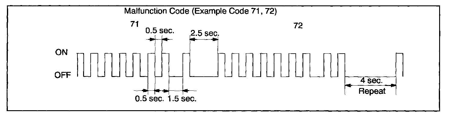 - If every sensor is normal, a normal code is output. (A cycle of 0.25 sec. ON and 0.25 sec. OFF is repeated.)