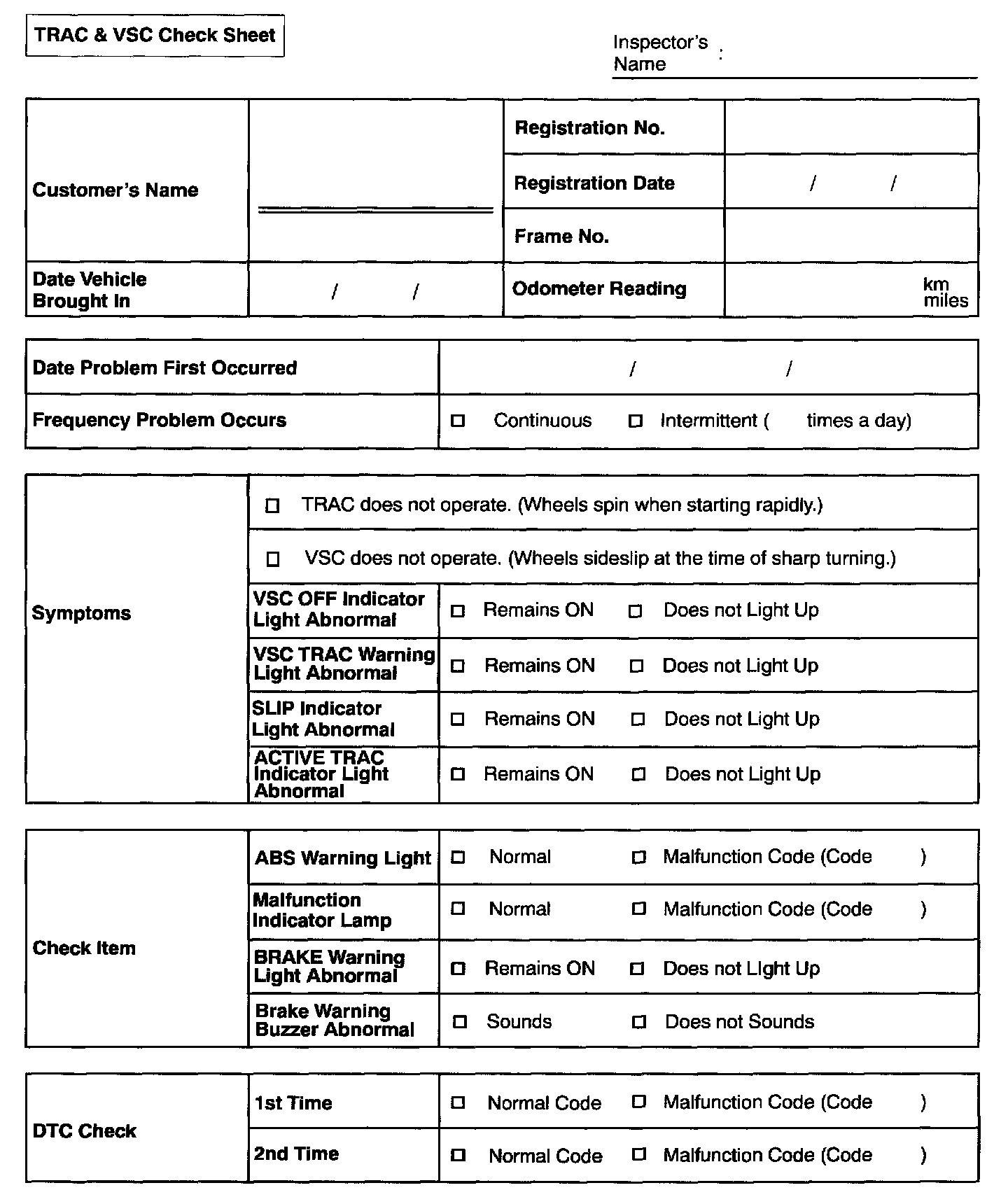 TRAC & VSC Check Sheet: