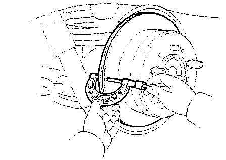 Using a dial indicator, measure the disc runout at a position 10 mm (0.39 inch) from the outside edge.