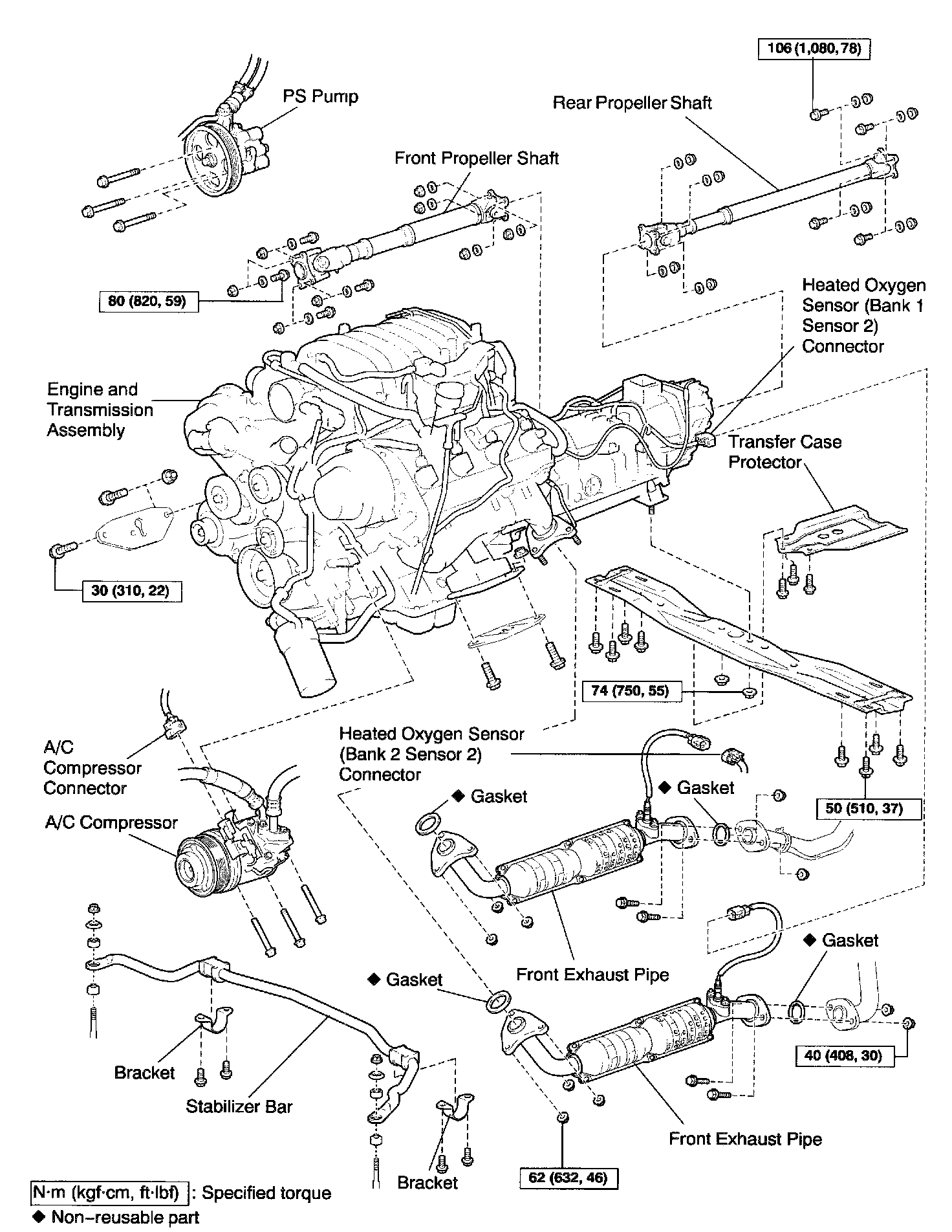74 Nm (750 kgf-cm, 55 ft. lbs.) for nuts