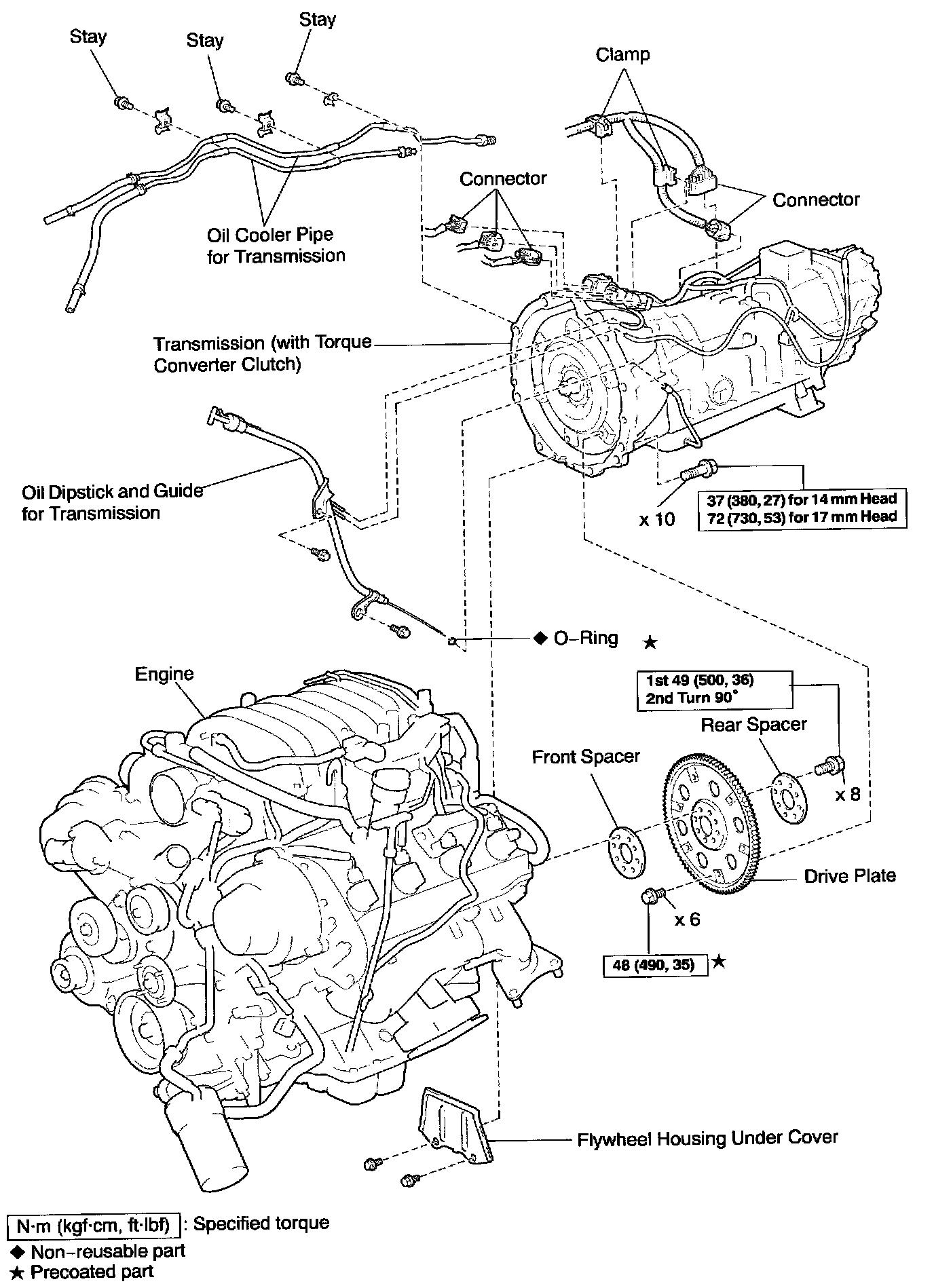 50 Nm (510 kgf-cm, 37 ft. lbs.) for bolts