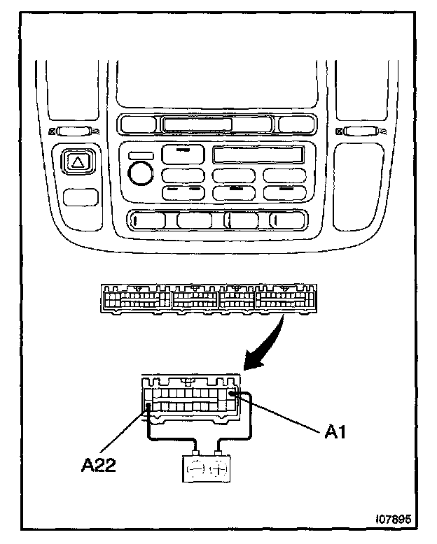 a. Connect the positive (+) lead from the battery to terminal A-1 and negative (-) lead to terminal A-22.