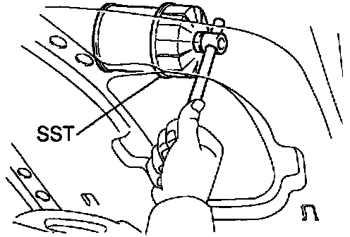 b. Using SST, remove the oil filter.