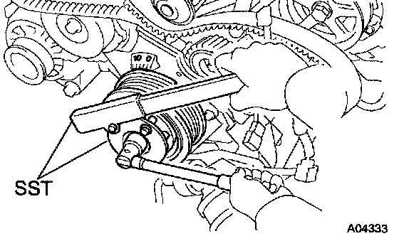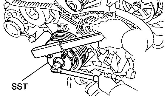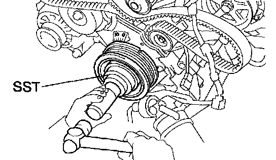 Using SST, remove the crankshaft pulley.