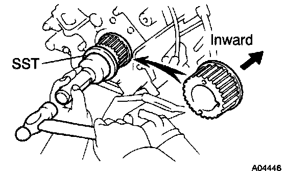b. Using SST and a hammer, tap in the crankshaft pulley.