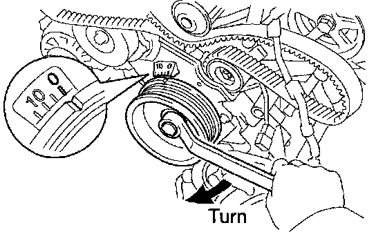 NOTICE: Always turn the crankshaft pulley clockwise.