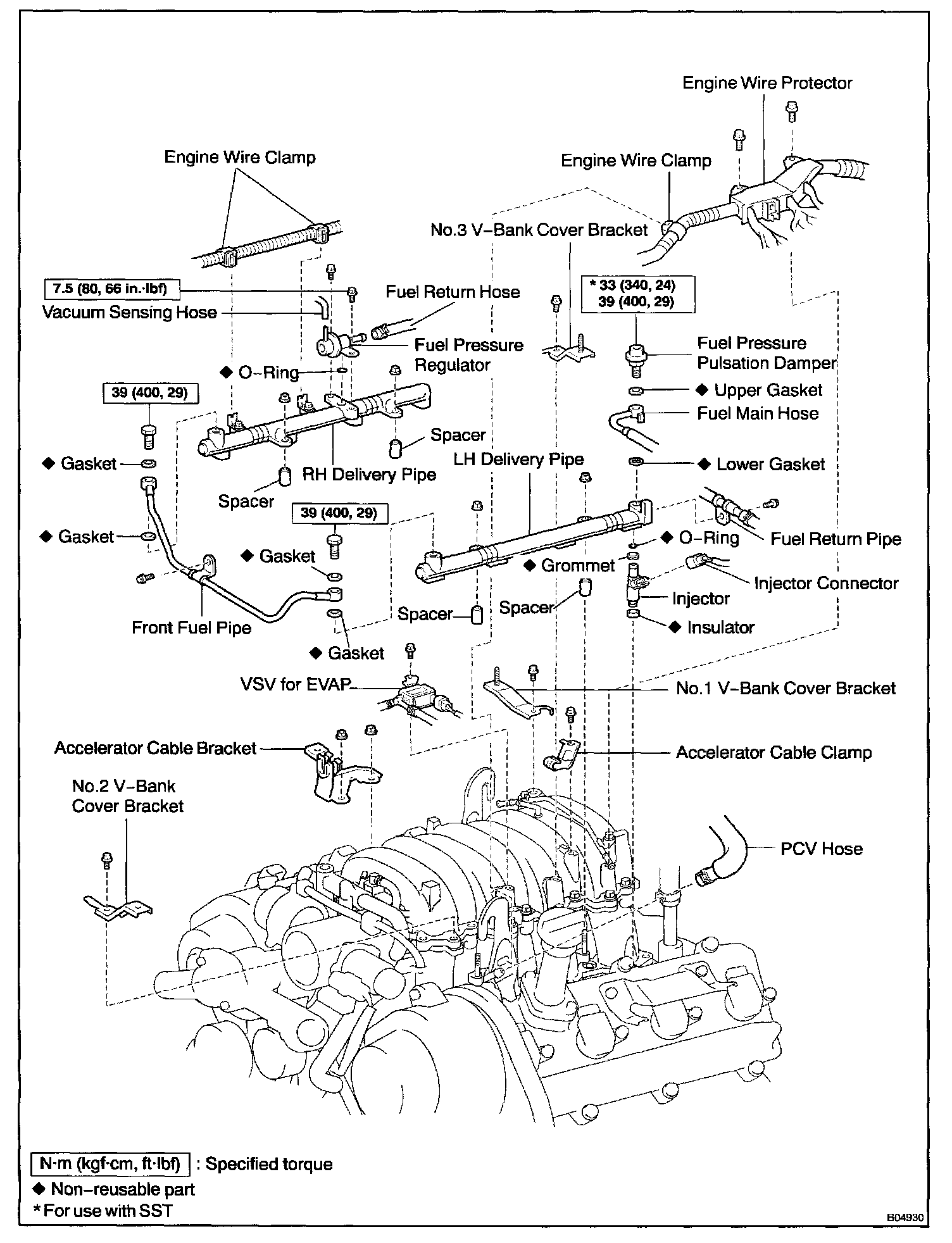 - No.1 V-bank cover bracket to upper intake manifold