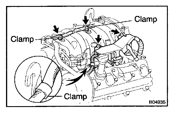- Accelerator cable clamp to upper intake manifold