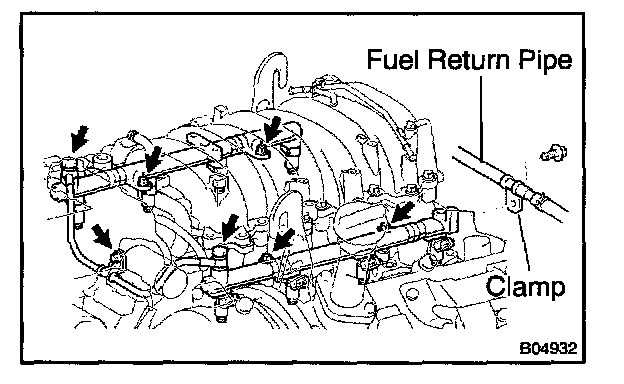 - Be careful not to drop the injectors when removing the delivery pipes.