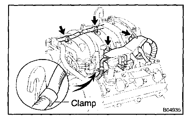Install the 2 wire clamps on the engine wire to the brackets on the delivery pipe.