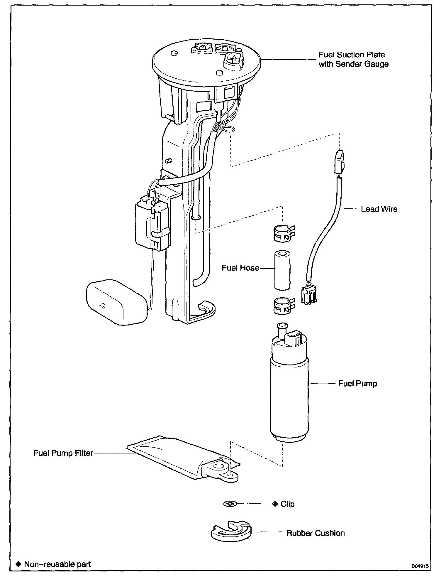 b. Disconnect the fuel hose from the fuel pump, and remove the fuel pump.
