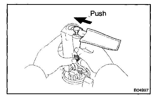 - As there is retained pressure in the fuel line, prevent it from splashing inside the vehicle compartment.