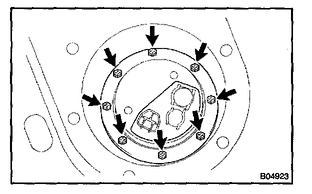 c. Install the fuel tank vent tube set plate with the 8 bolts.