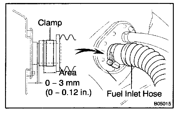 b. Check the fuel tank vapor vent system hoses and connections for looseness, sharp bends or damage.