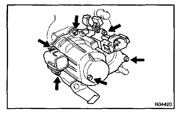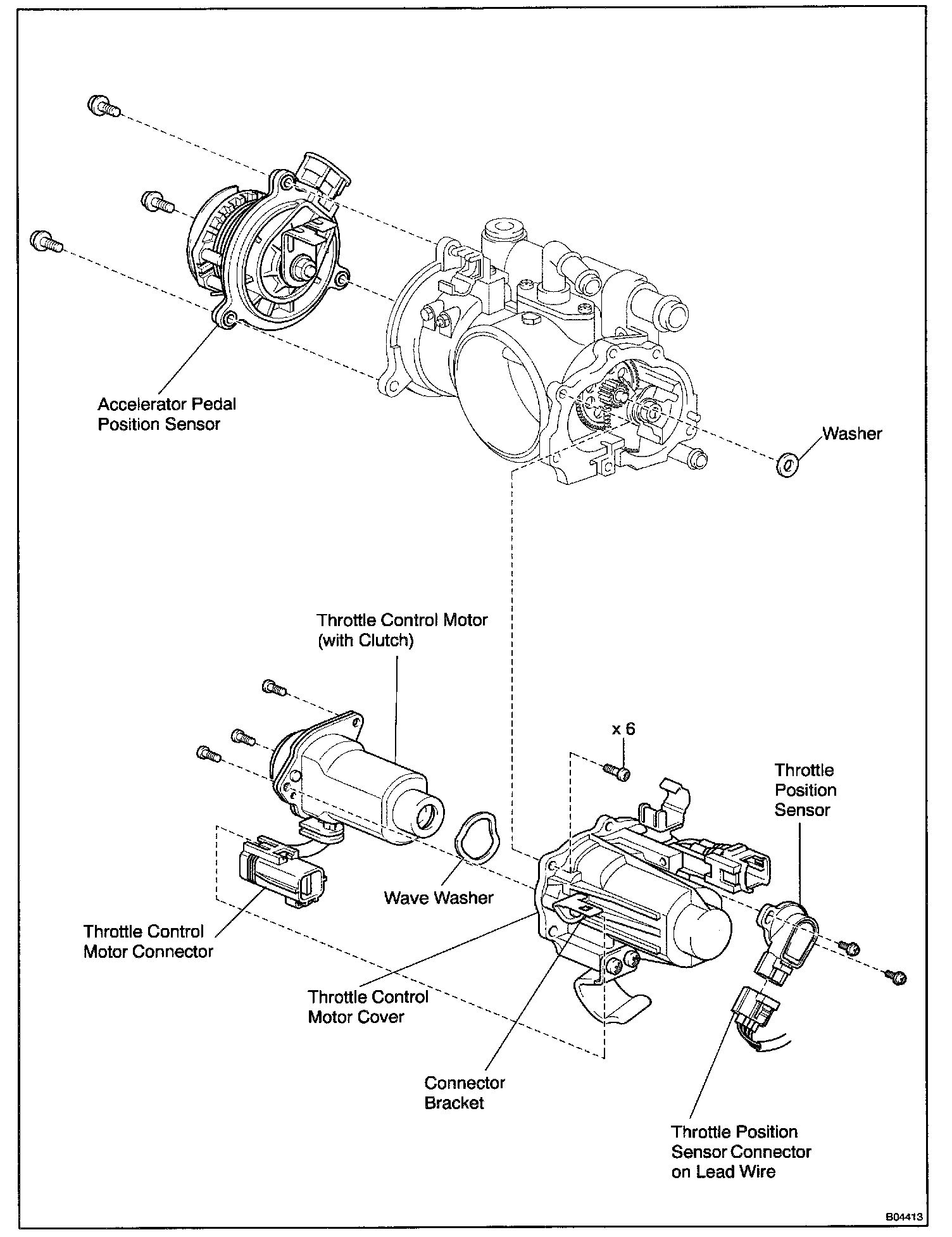 2. Remove the 6 screws, the throttle control motor cover, motor assembly and washer.