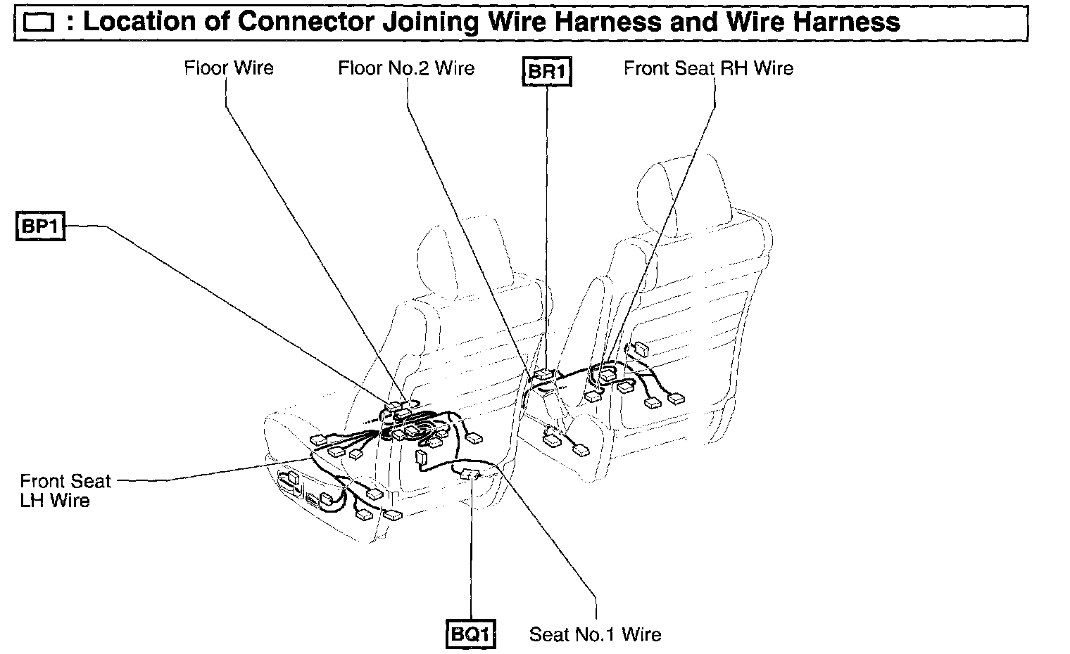BP1 Floor Wire and Front Seat LH Wire (Front Side Under the Driver's Seat)