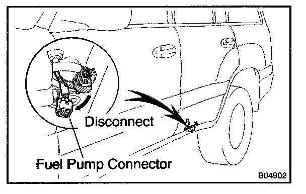 5. If you have no LEXUS hand-held tester, connect the positive (+) and negative (-) leads from the battery to the fuel pump connector.