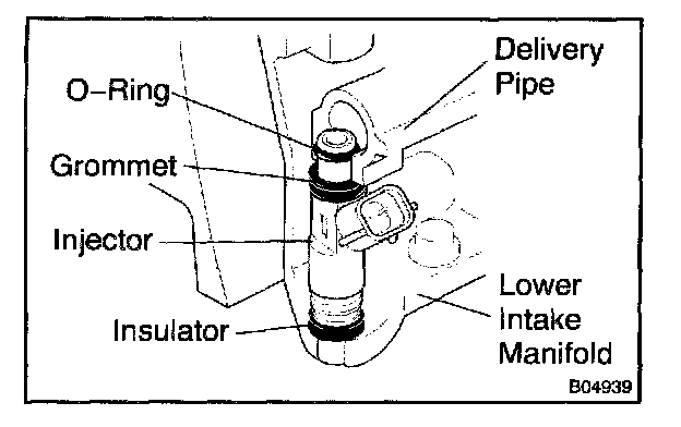 Before installing the injector, must apply spindle oil or gasoline on the place where a delivery pipe or an intake manifold touches an O-ring of the injector.