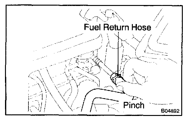 The pressure in the high pressure line will rise to approx. 392 kPa (4 kgf/sq.cm, 57 psi). In this state, check to see that there are no leaks from any part of the fuel system.