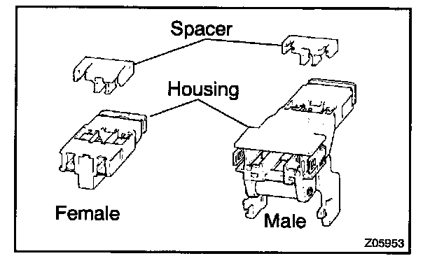 Each connector has a two-piece construction consisting of a housing and a spacer. This design enables the terminal to be locked securely by two locking devices (the spacer and the lance) to prevent terminals from coming out.