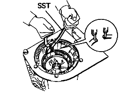 i. Install SST behind the No.1 brake piston and gradually lift it out of the transmission case.