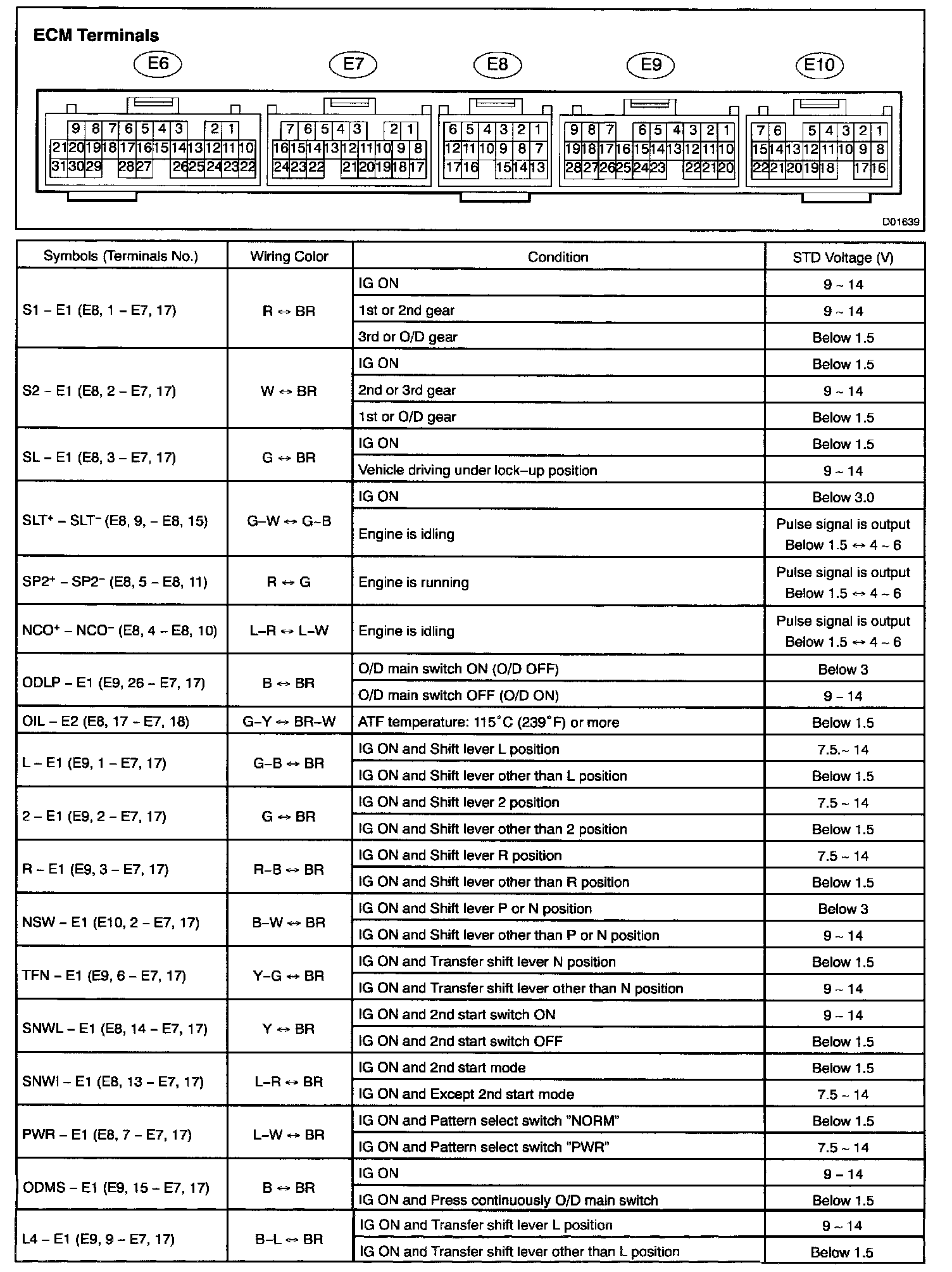 Pinout Values and Diagnostic Parameters