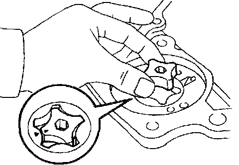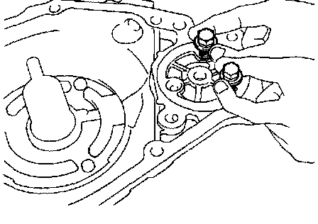 Remove the 3 bolts and oil pump plate.