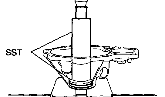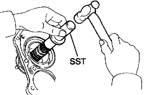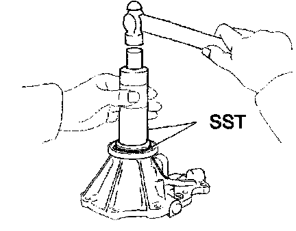 b. Using SST and a hammer, drive in the oil seal.