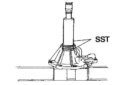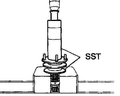 a. Using SST and a press, install the ball bearing.