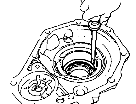 Using a screwdriver, pry out the oil seal from the rear extension housing.
