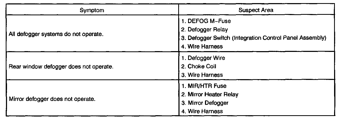 Problem Symptoms Table - Defogger System: