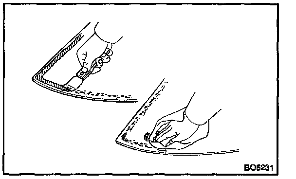 b. Cut off the old adhesive around the clips and spacers installation area.