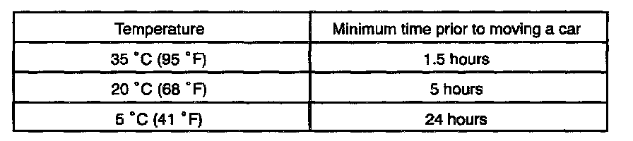 NOTE: Take care not to drive the vehicle during the time described in the table.