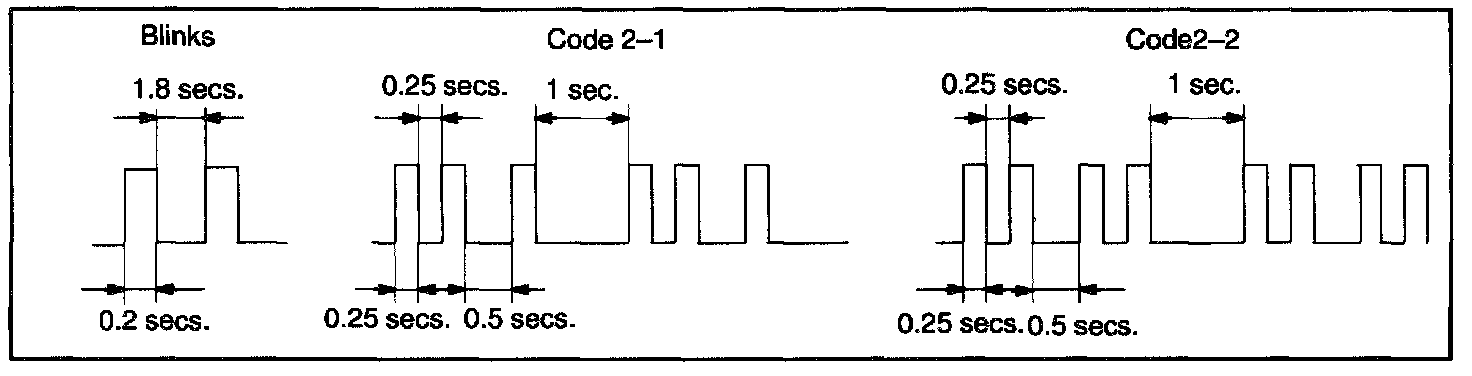 - When key code registration could not be performed in the automatic registration mode, code 2-1 is output from the security indicator and when inserting the already registered key, code 2-2 is output.