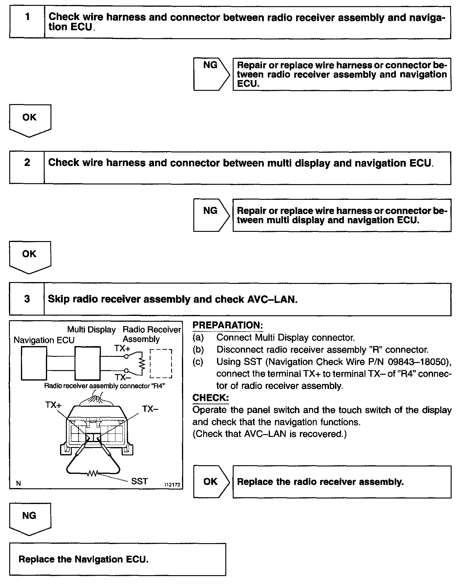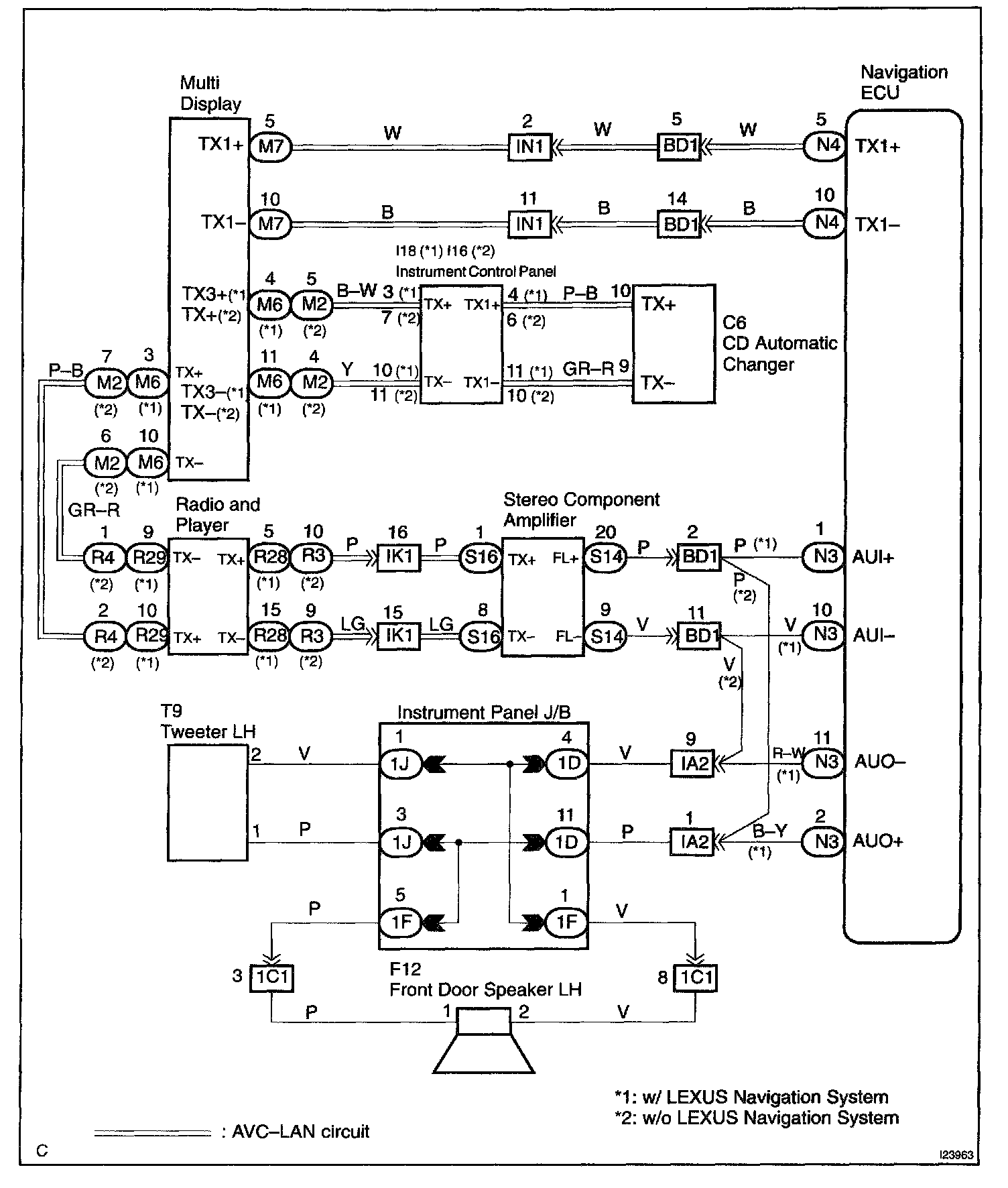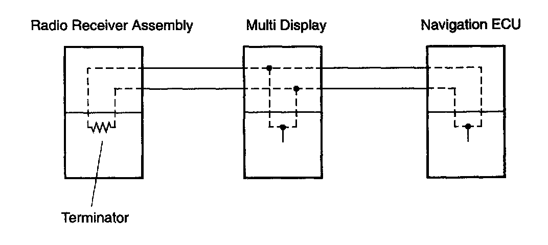 In this AVC-LAN, multi display becomes the master of the communication, and the radio receiver assembly has a terminator necessary for transmitting the communication.