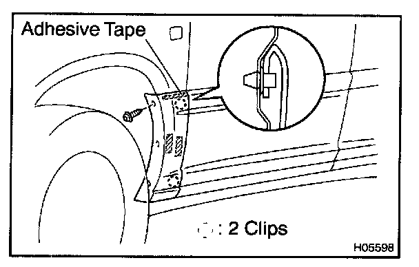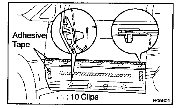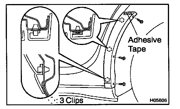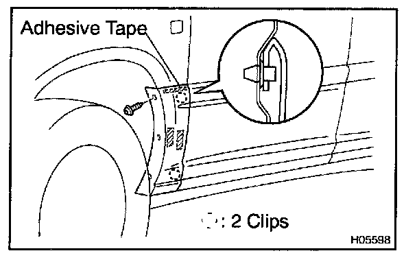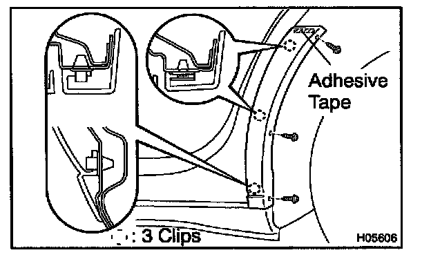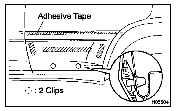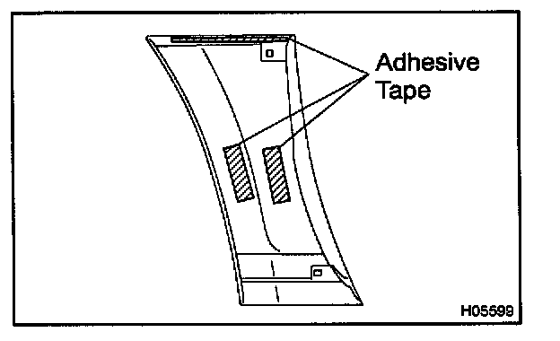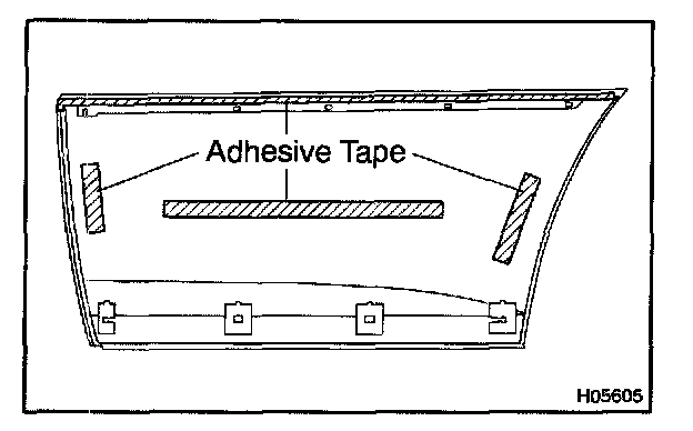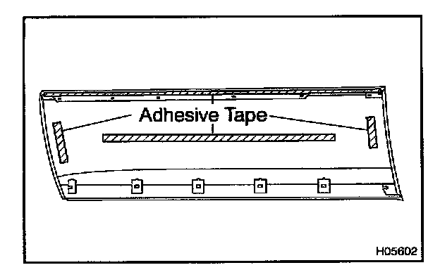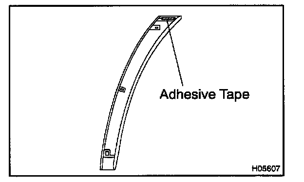 4. Apply a new adhesive tape to the moulding as shown in the illustration.