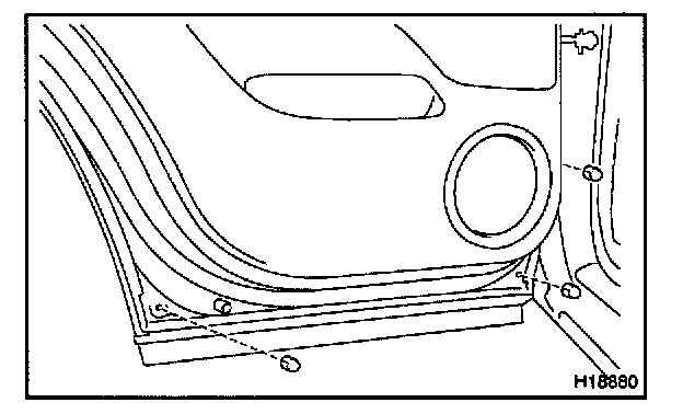 e. Install the lower rear door outside moulding with the 2 screws to the outside rear door moulding.