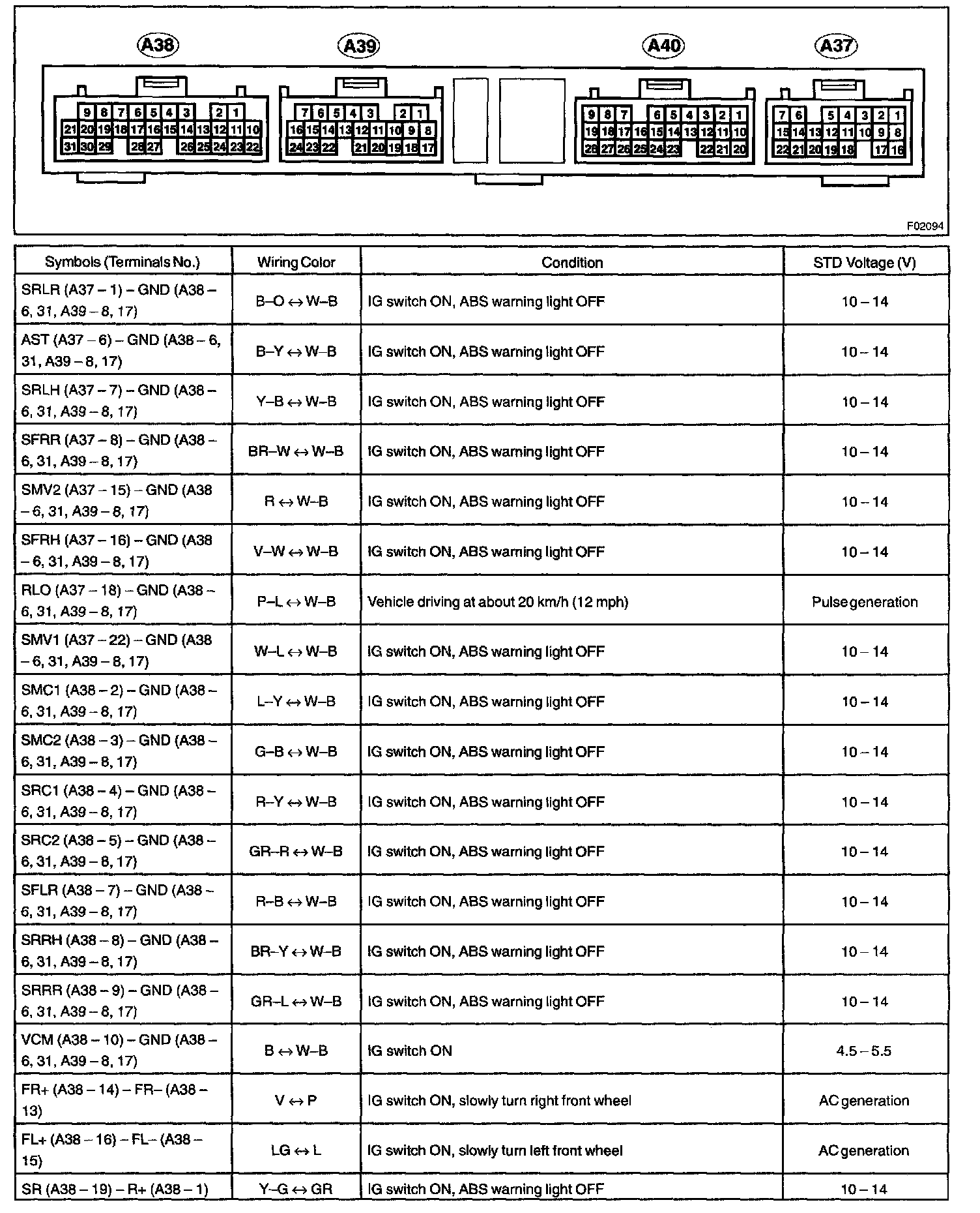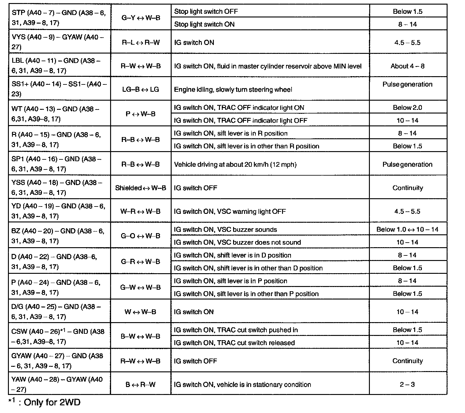 Pinout Values and Diagnostic Parameters
