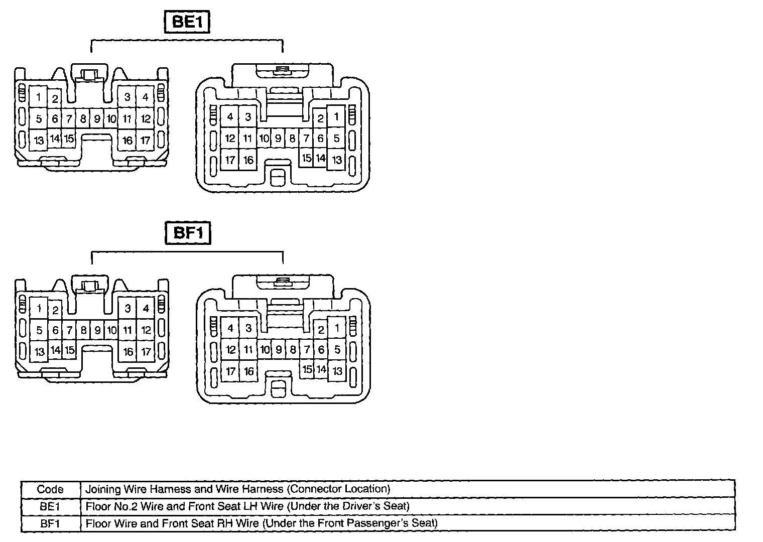 Under Wood Wire Harness To Wire Harness Connectors (BE1 - BF1):