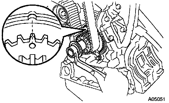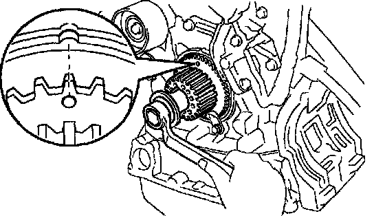 Turn the crankshaft, and align the timing marks of the crankshaft timing pulley and oil pump body.