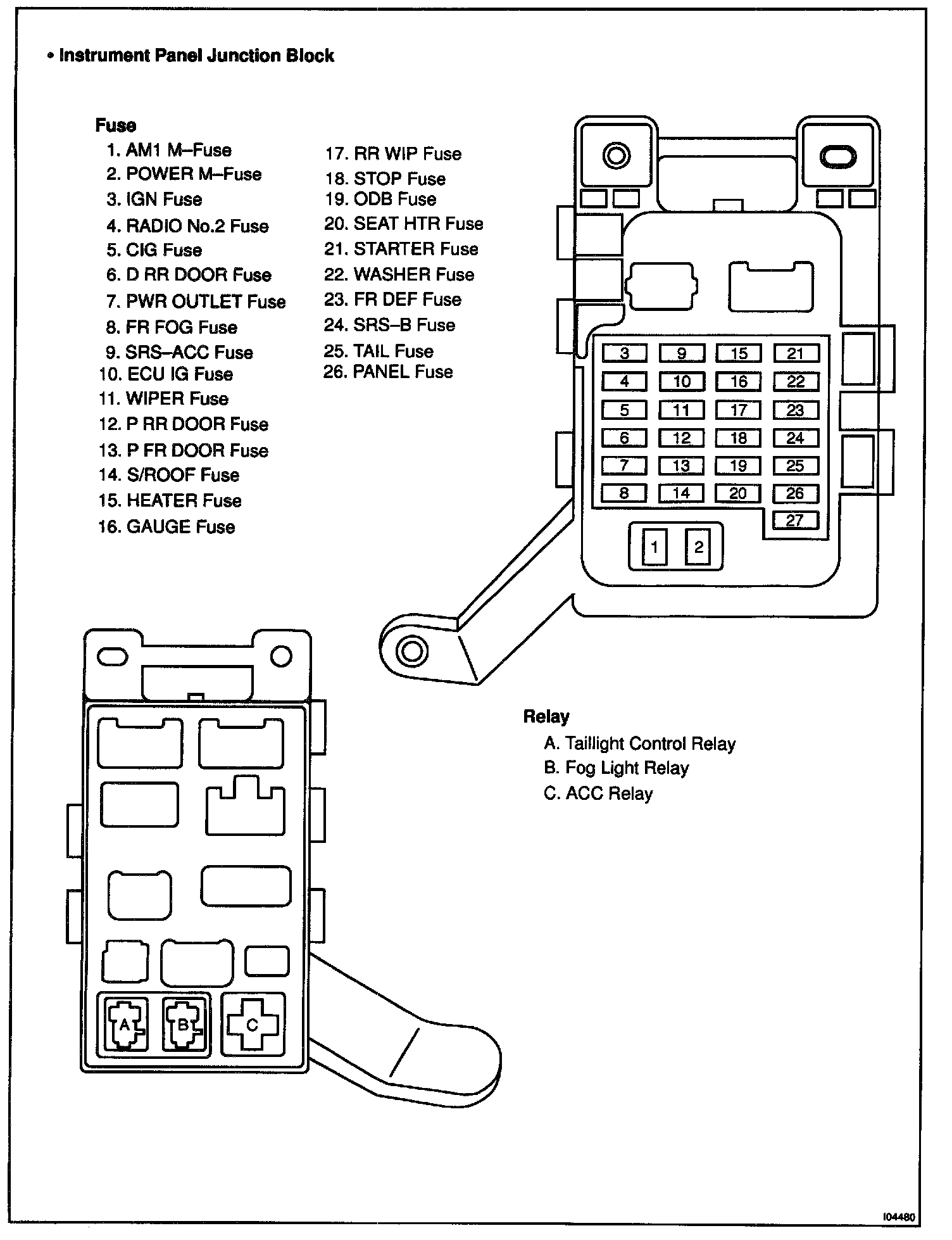 The power source supplies power to each of the vehicle's electrical devices. It is composed of the battery, fuses and relays, which are located centrally at engine room junction block, engine room No.1 relay block, fusible link block and engine room No.2 relay block in the engine compartment, and instrument panel junction block in the cabin near the driver's feet.