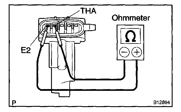 Using an ohmmeter, measure the resistance between terminals THA and E2.