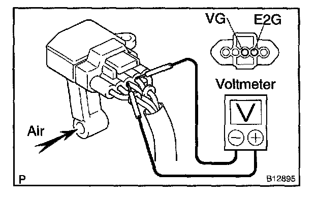 c. Using a voltmeter, connect the positive (+) tester probe to terminal VG, and negative (-) tester probe to terminal E2G.