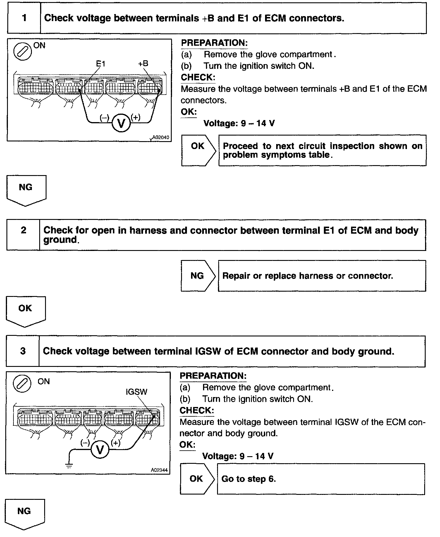 This signal causes current to flow to the coil, closing the contacts of the EFI main relay and supplying power to terminal +B of the ECM.
