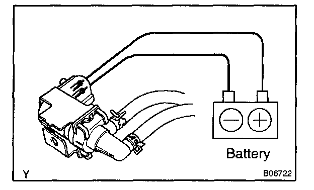 2. Connect the positive (+) and negative (-) leads from the battery to the VSV terminals for the EVAP.