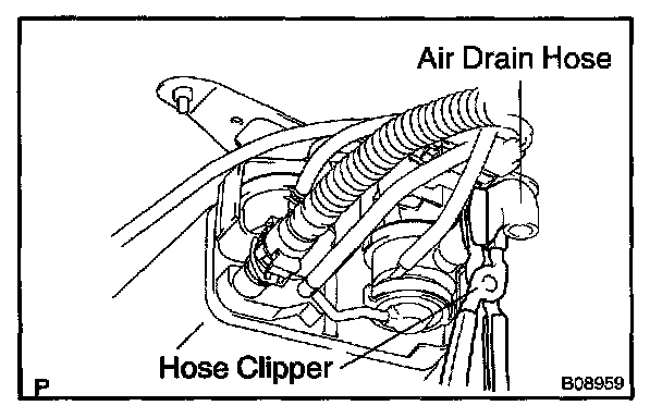 b. Disconnect the air drain hose from the canister tank, and plug its.