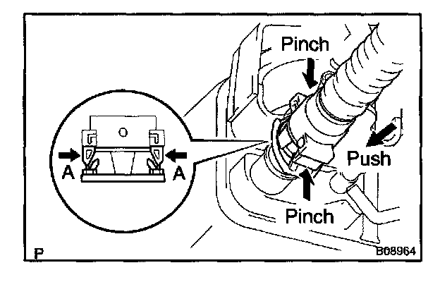 Push the connect deep inside, pinch portion A, pull out the connector.